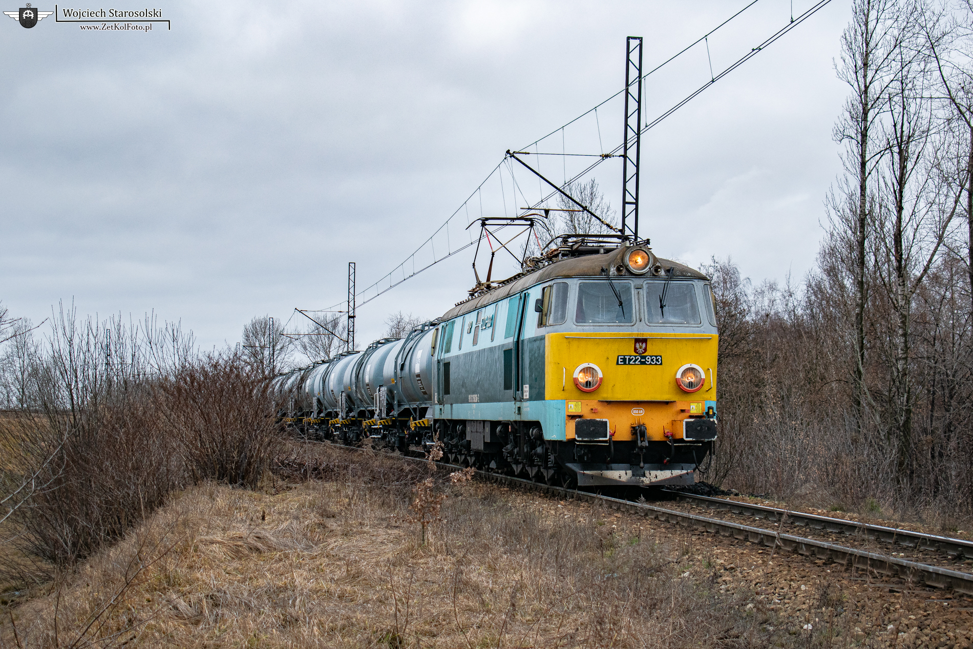 06.01.2023 | Katowice | Szlak Katowice Szopienice Płn.-podg.Szabelnia | ET22-933 z beczkami na haku oczekuje na wjazd do Szabelni.