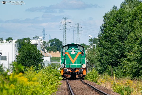 15.07.2022 | Gliwice | Bocznica Gliwickiego zakładu Stellantis | SM42-2308 spycha dwie platformy na...