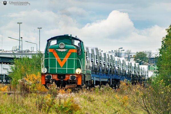 19.10.2022 | Gliwice | Bocznica gliwickich zakładów stellantis | SM42-2308 z autolawetami manewruj...